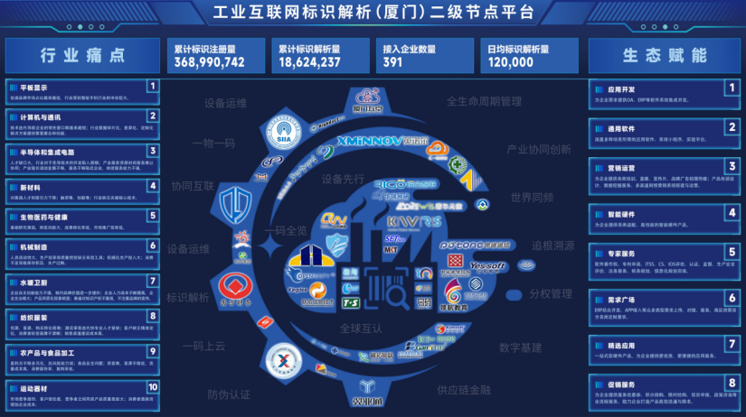 2022年8月,由尊龙集团旗下厦门市物联网产业研究院承接建设的国家工业互联网标识解析(厦门)综合型二级节点正式投入运营,为厦门乃至全国企业提供专业的标识注册、标识查询、标识解析等数据服务。迄今平台标识注册量已超3.7亿条,标识解析量近2千万次,为保障工业互联网互联互通提供了关键基础设施,助力工业企业提升数字化转型能力,为厦门产业数字化发展注入一股澎湃新动能。